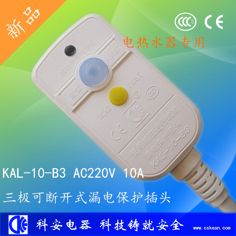 产品名称: B3三极可断开10A不可拆线漏电保护插头