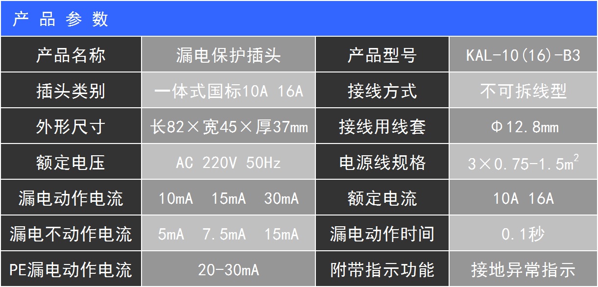 简述: B3三极可断开10A不可拆线漏电保护插头